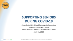 Ensuring this year’s seniors stay on track and graduate high school with a postsecondary plan in place is the topic occupying many educator and families’ minds, across our network. We have also heard interest in establishing a means for us to collectively explore options by engaging in open and honest dialogues with members of the cross-state high school redesign school community. We look forward to the opportunity to learn from each other, to engage with you in dialogue, and to co-create possibilities.