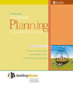 Charettes 101: Dynamic Planning for Community Change is a booklet that describes the process of holding a charrette, a four- to seven-day planning event that assembles an interdisciplinary team of all stakeholders to design and plan a project together. During the course of the charrette, a team of planners, residents, business people, architects, environmental experts, policy makers, and others works together in brainstorming sessions and sketching workshops. Throughout the charrette, participants meet during scheduled sessions and work out specific planning problems. People passionately argue their points and generously share their knowledge and insights. By listening to participants debate the issues, everyone in the room learns more about the project’s complexity.