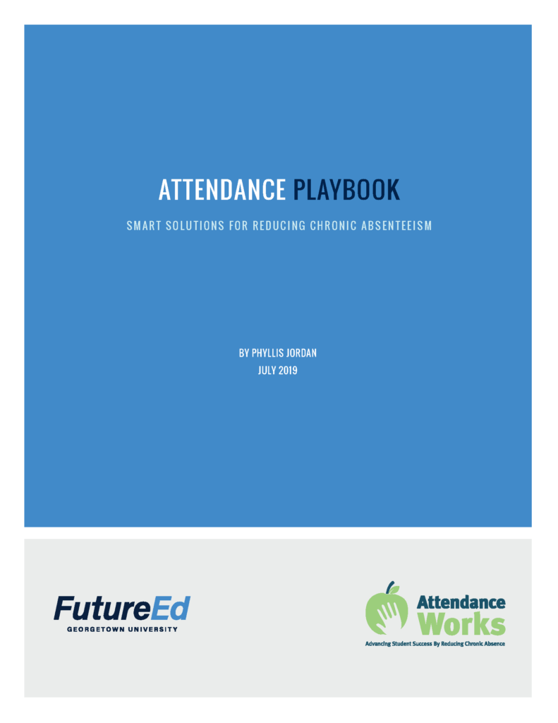 Attendance Playbook Smart Solutions for Reducing Chronic Absenteeism addresses absenteeism at the ground level, providing local policymakers and educators with nearly two dozen practical strategies for improving attendance that have strong track records and are in many instances easy to introduce and simple to scale. It explains each intervention, identify the problem it solves, summarize supporting research, and highlight schools or school districts that have used the strategy successfully. The list isn’t exhaustive, but it represents a substantial sample of the leading work and latest thinking on improving attendance. Download the Playbook (PDF)