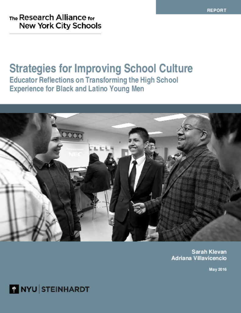 Strategies for Improving School Culture from the Research Alliance for New York City Schools educators reflections on transforming the high school experience for Black and Latino young men. Download the Report (PDF)