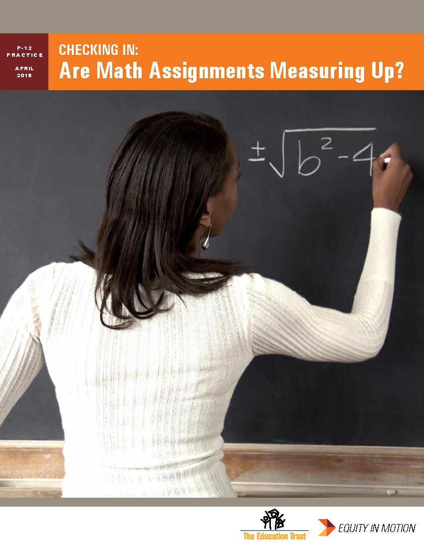 Are Math Assignments Measuring Up? Students can do no better than the assignments they’re given. That simple idea has been a driving force for The Education Trust’s practice work since its inception in the 1990s. And it animates a new generation of that work today, which involves analyzing classroom assignments in the context of more rigorous common standards and calling teachers to action. This kind of painstaking analysis of the daily academic experiences of students provides hugely important insights into what teachers know and understand about college- and career-ready standards — and what those teachers believe students