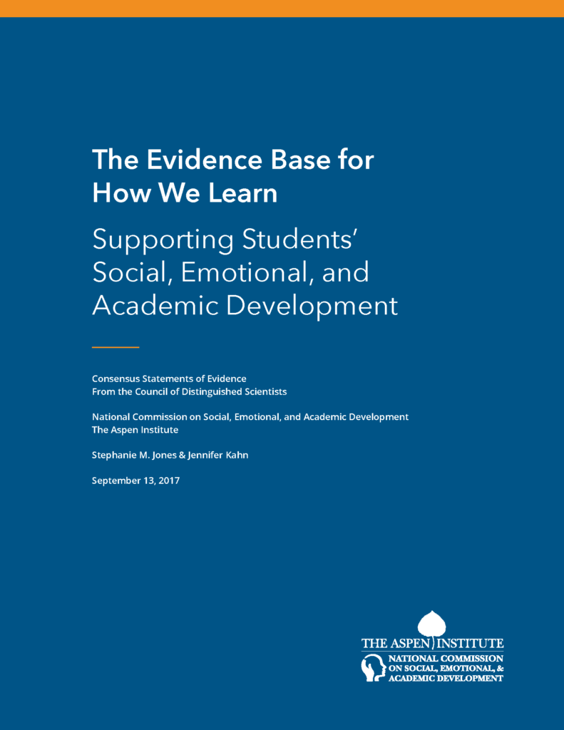 The Evidence Base for How We Learn Supporting Students’ Social, Emotional, and Academic Development by the National Commission on Social, Emotional, and Academic Development The Aspen Institute. A 20 page report that shows compelling research demonstrates what parents have always known—the success of young people in school and beyond is inextricably linked to healthy social and emotional development. Download the Report (PDF)